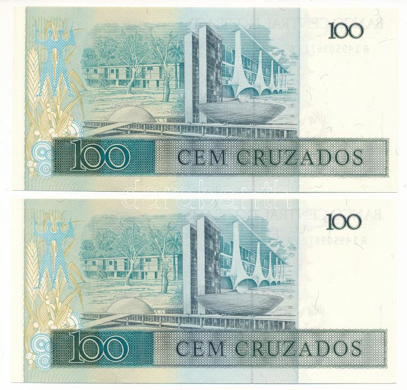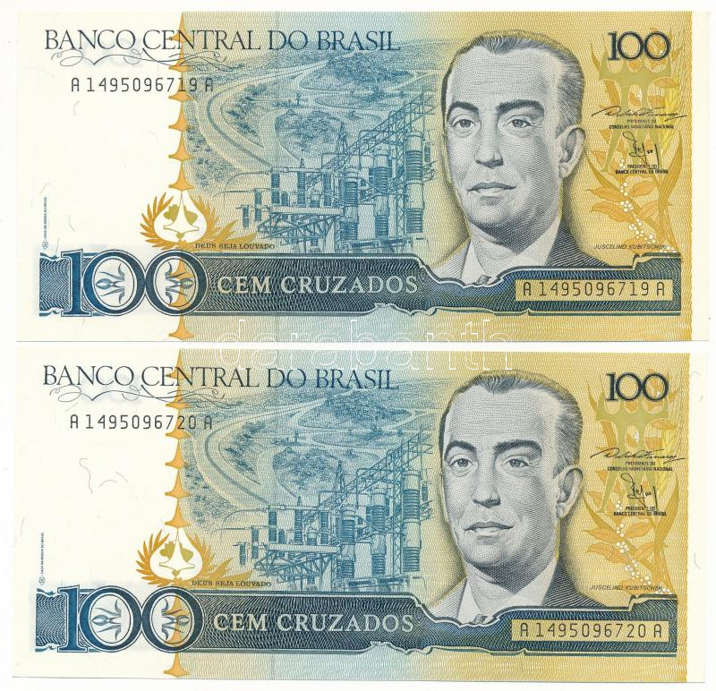 Brazil ND (1987) 100 Cruzados (2x) consecutive serials "A 1495096719 A - A 1495096720 A" C:UNC,AU
