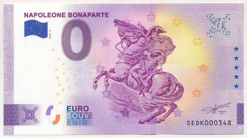 France 2023. 0 Euro "Napoleone Bonaparte" souvenir banknote with low "SEDK000348" serial number C:UNC