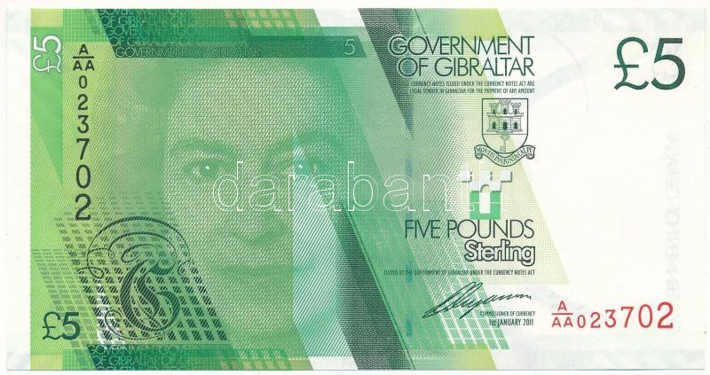Gibraltár 2011. 5P "A/AA 023702" T:VF,F szép papír