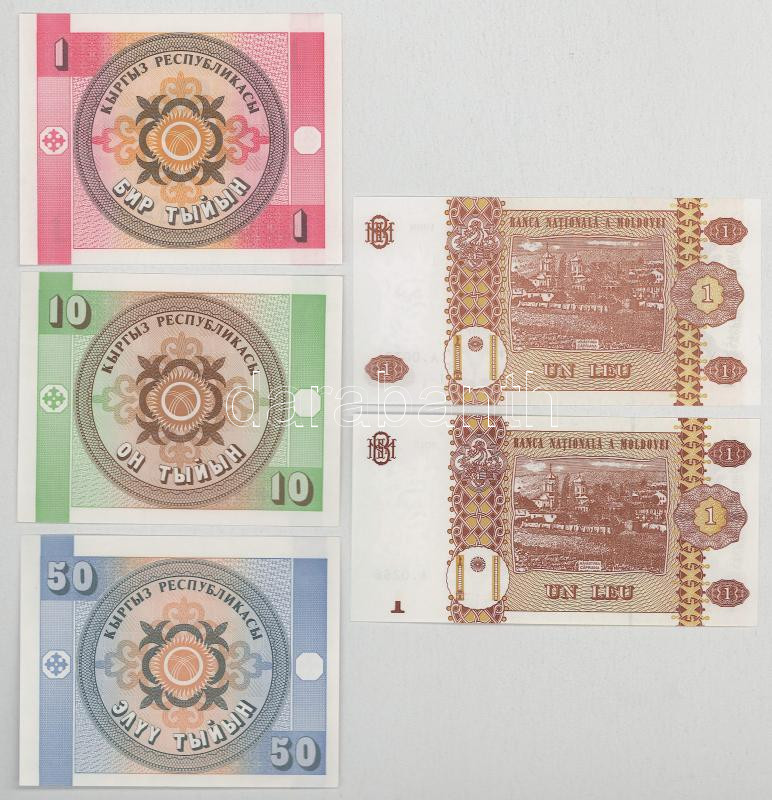 Kyrgyzstan ND(1993) 1 Tyiyn + 10 Tyiyn + 50 Tyiyn + Moldova 1998-2015. 1L (2pcs) C:UNC-AU
