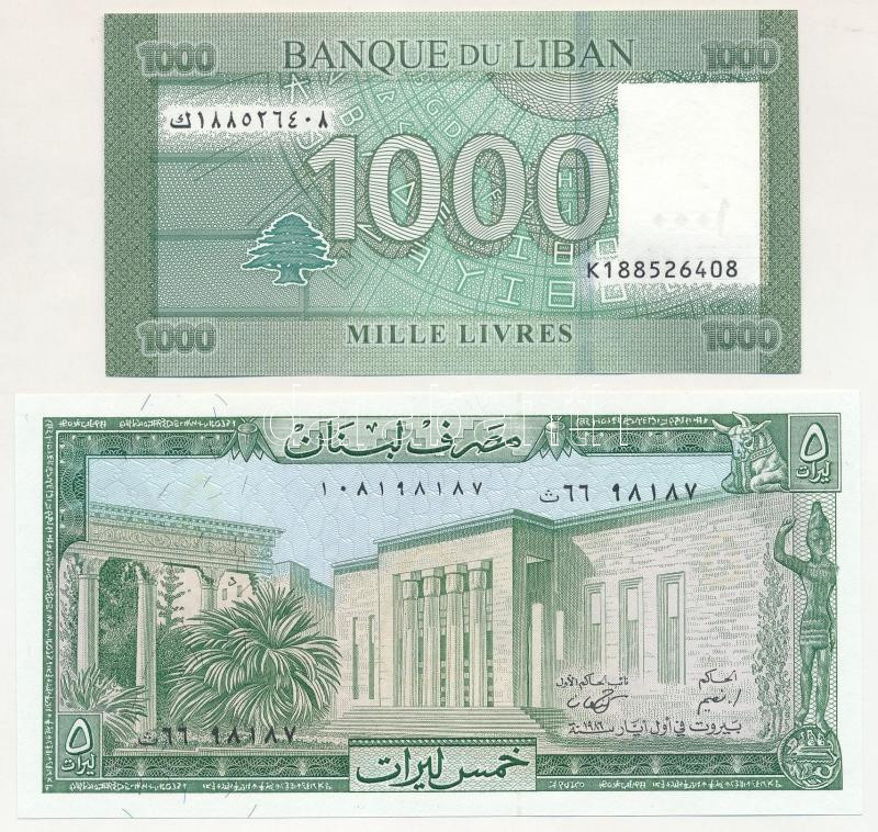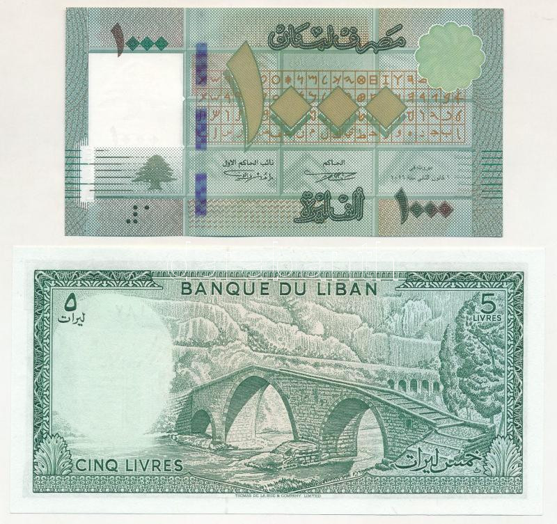 Lebanon 1986. 5 Livres + 2016. 1000 Livres C:UNC