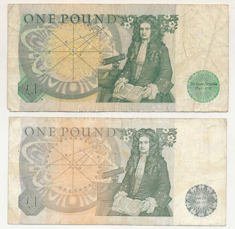 Great Britain / England ND (1978-1981) 1 Pound "Elizabeth II / Sir Isaac Newton" + ND(1981-1984) 1 Pound "Elizabeth II / Sir Isaac Newton" C:F-VG