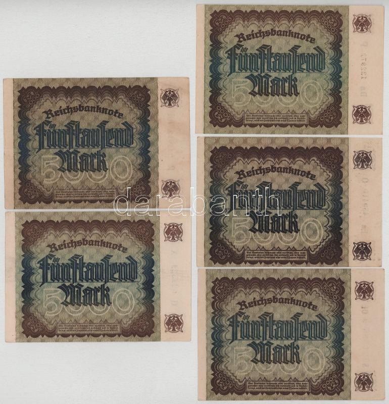 Germany 1922. 5000 Mark (5x) C:VF,F fine paper