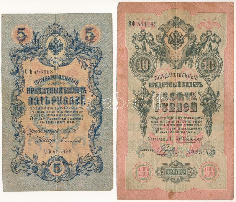 Russian Empire 1912-1917. (1909) 5 Rubles + 10 Rubles Sign.: Shipov C:F