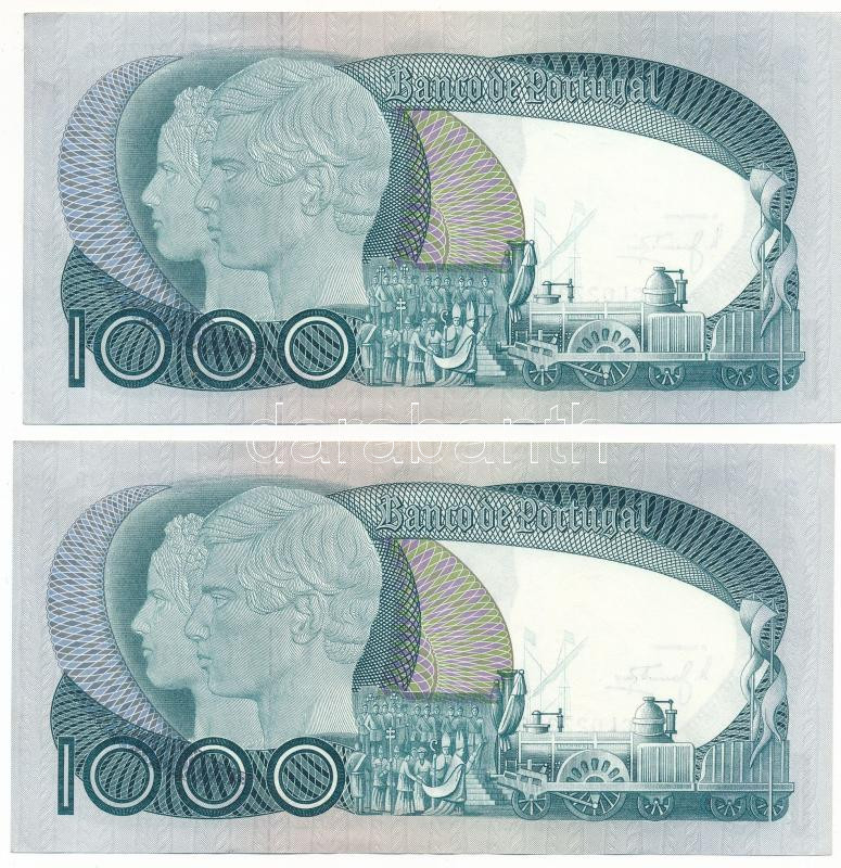 Portugal 1980. 1000 Escudos (2x) consecutive serials "ECL027338 - ECL027339" C:XF