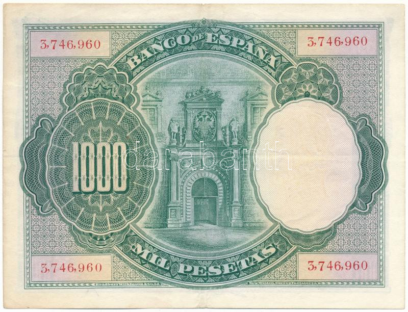 Spanyolország 1925. 1000P "3,746,960" T:F szép papír