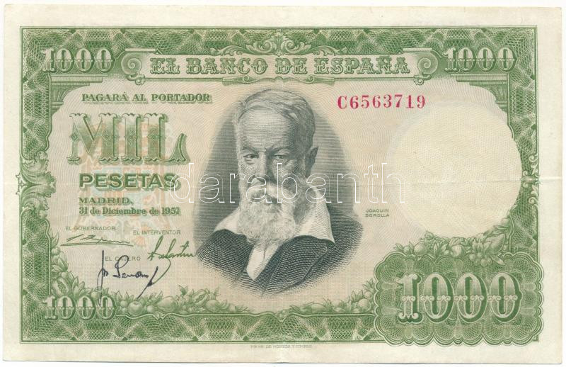Spanyolország 1951. 1000P "C6563719" T:F szép papír