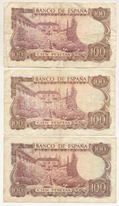 Spain 1970. 100 Pesetas (3x) C:F