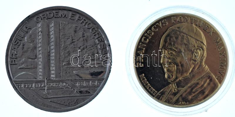 Brazília 1974. "Brasilia ordem e progresso / 1973 Brasilia design für brasilianische erzeugnisse 1974" fém kétoldalas emlékérem (38mm) + Vatikán 2013. "Ferenc pápa" fém emlékérem kapszulában (33mm) T:AU