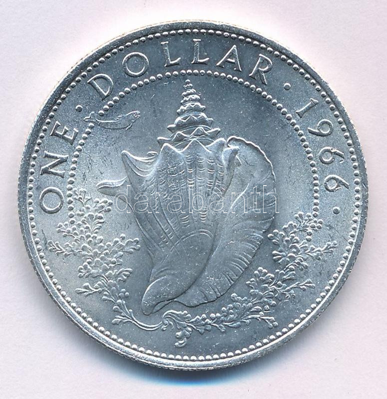 Bahamas 1966. 1 Dollar Ag "Elizabeth II / Conch shell" C:AU