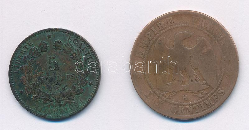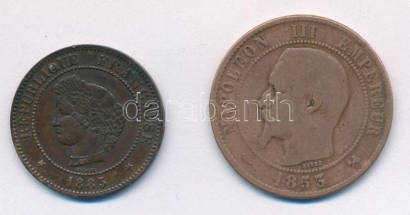 Franciaország 1853B 10c bronz "III. Napóleon" + 1883A 5c bronz T:VF,F patina