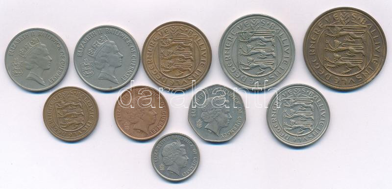 Guernsey 1956. 8D bronz + 1970-2006. 1p-20p (9xklf) T:2-3 Guernsey 1956. 8 Doubles bronze + 1970-2006. 1 Penny - 20 Pence (9xdiff) C:XF-F