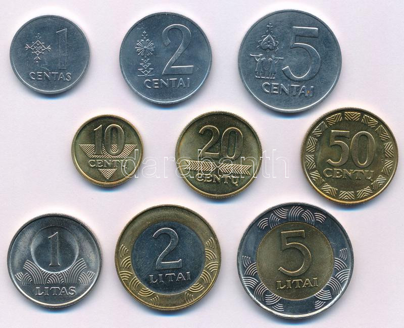 Lithuania 1991-2003. 1 Centas - 5 Litai (9xdiff) C:UNC-XF