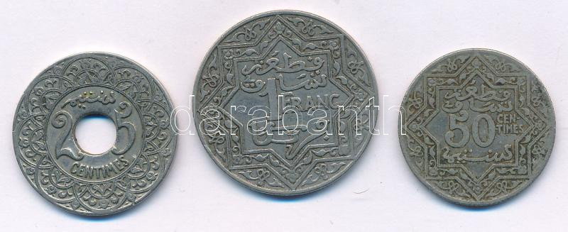 Marokkó 1921. Francia Protektorátus 25c Cu-Ni + 50c Ni + 1Fr Ni T:VF patina