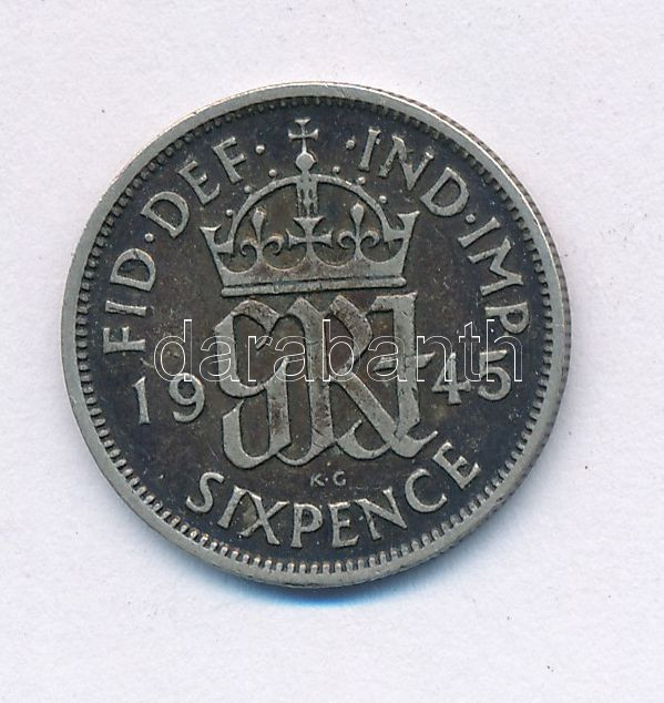 United Kingdom 1945. 6 Pence Ag "George VI" C:XF,VF patina