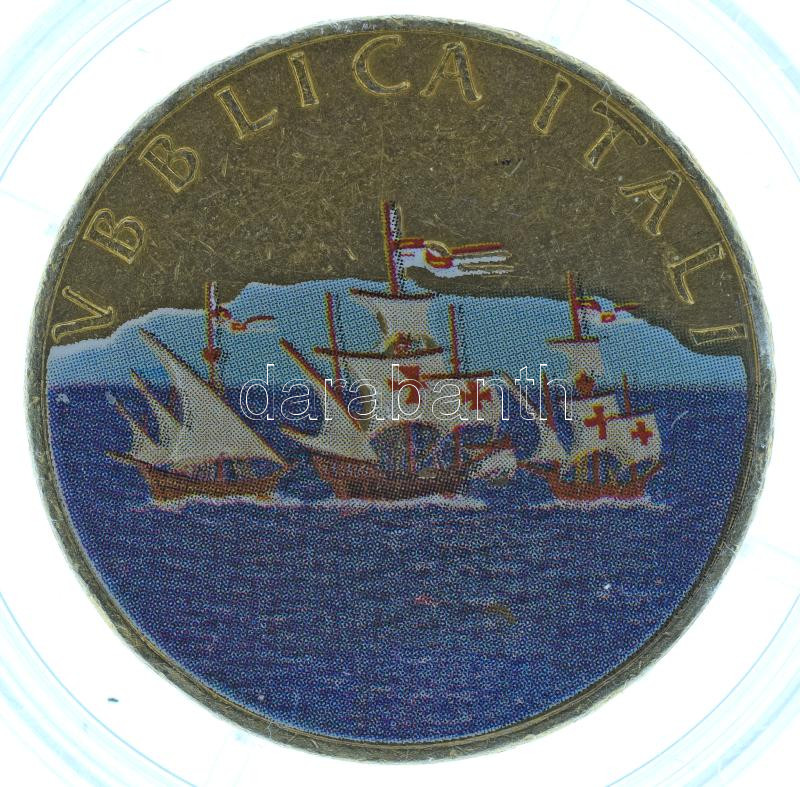 Olaszország 1959R 500L aranyozott és festett Ag "Kolumbusz hajói" kapszulában, dísztokban T:AU,XF
