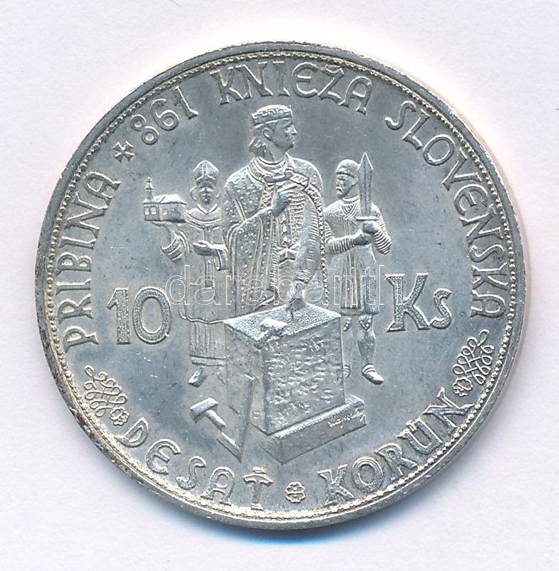 Slovakia 1944. 10 Korun Ag "Church with cross - Prince Pribina" C:AU small patina