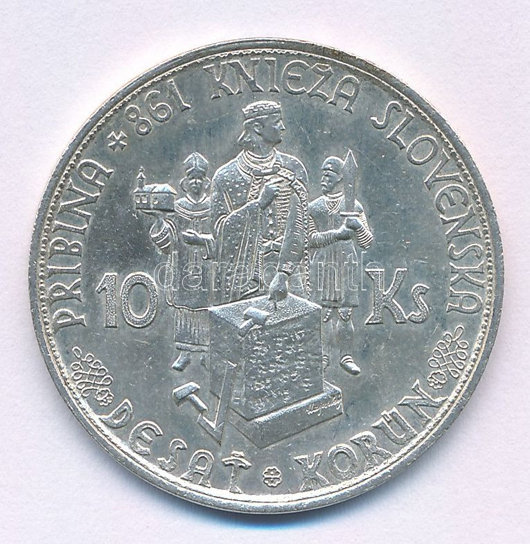 Slovakia 1944. 10 Korun Ag "Church with cross - Prince Pribina" C:AU