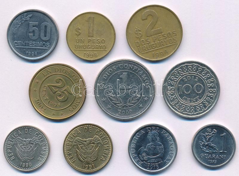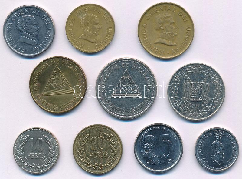 Vegyes 10xklf közép- és dél-amerikai érmetétel, közte Uruguay, Nicaragua, Suriname T:AU-VF