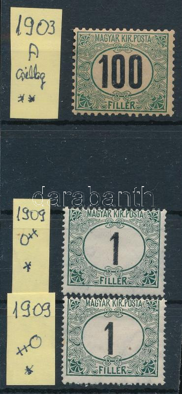 1903-1909 3 db Zöldportó bélyeg vízjelállásokkal
