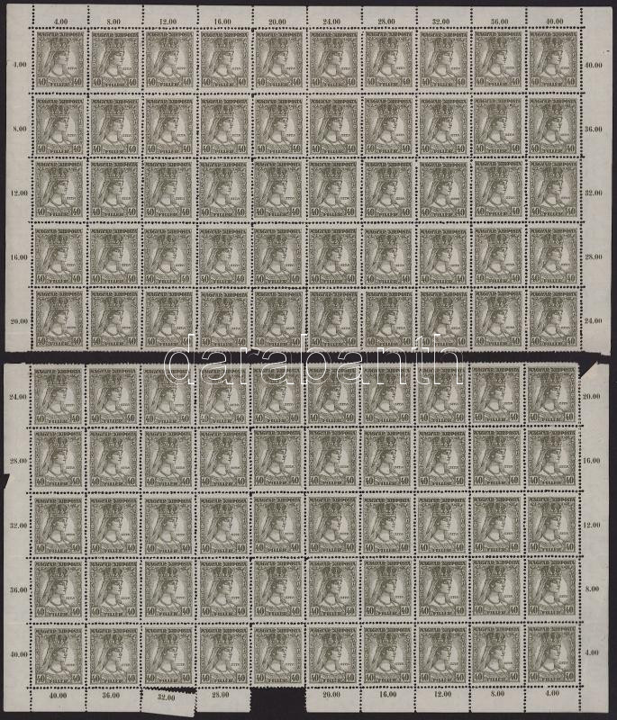 1918 Károly-Zita 40f 2 db félív (elvált fogak / aparted perf.)
