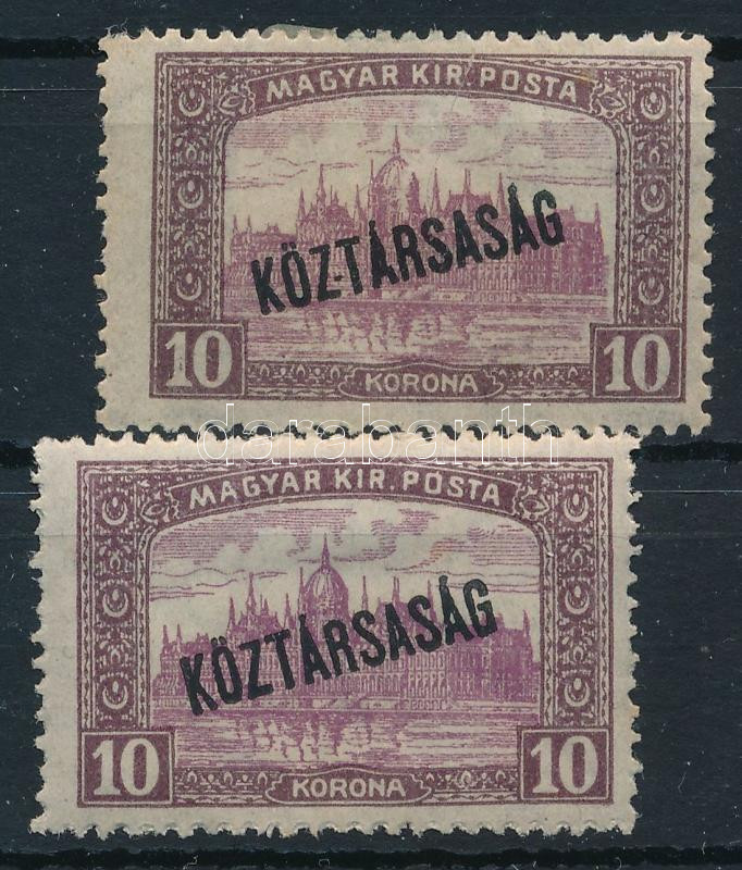1918 Köztársaság/Parlament 10K a kupola közepes hiányzik és a KÖZTÁRSASÁG feliratban a Z és T között "kötőjel" + támpéldány