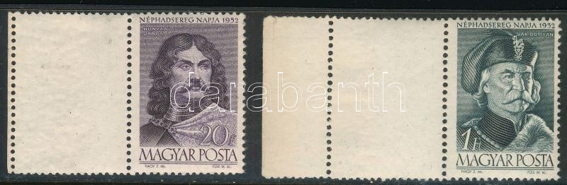 1952 A Néphadsereg Napja (II.) 20f bal oldali üres mezővel + 1Ft bal oldali üres mezővel