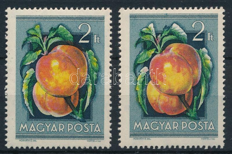 1954 Gyümölcsök (I.) 2Ft eltolódott színnyomattal + támpéldány