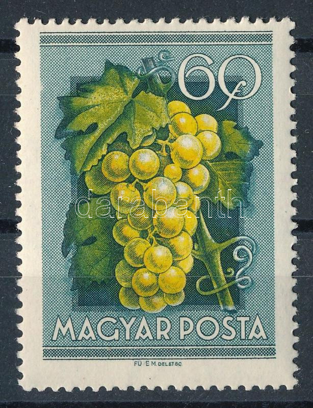 1954 Gyümölcsök (I.) 60f a tervező nevéből hiányzik az "L" betű (FÜ E) tévnyomat. Postatisztán rikta!