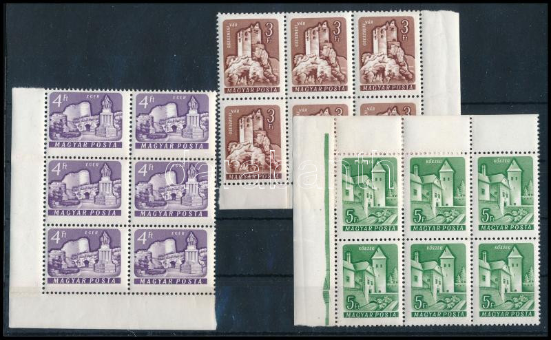 1960-1961 Várak 3Ft, 4Ft, 5Ft ívsarki hatostömbökben vízjel nélküli papíron
