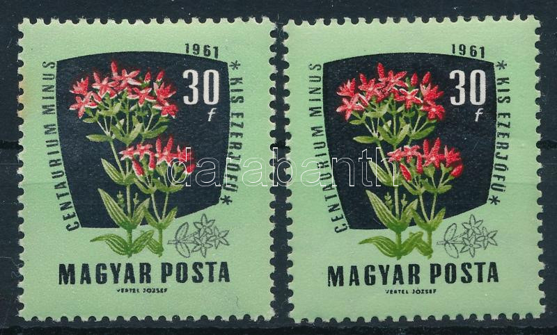 1961 Gyógynövények 30f több fehér szirommal + támpéldány