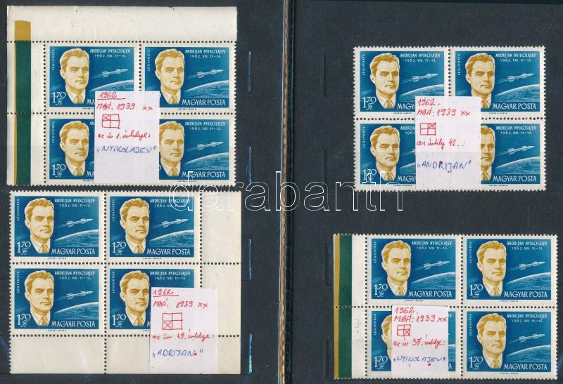 1962 A világűr meghódítói 1,70Ft 4 db 4-es tömb az ismert 4 klf tévnyomatokkal, így egyben ritka! (14.000)