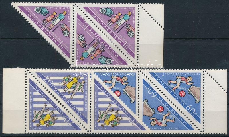 1964 Közlekedjünk szabályosan sor 3-as ívszéli összefüggésekben, fordított párokkal, az 1Ft értékeken a lila szín eltolódásával