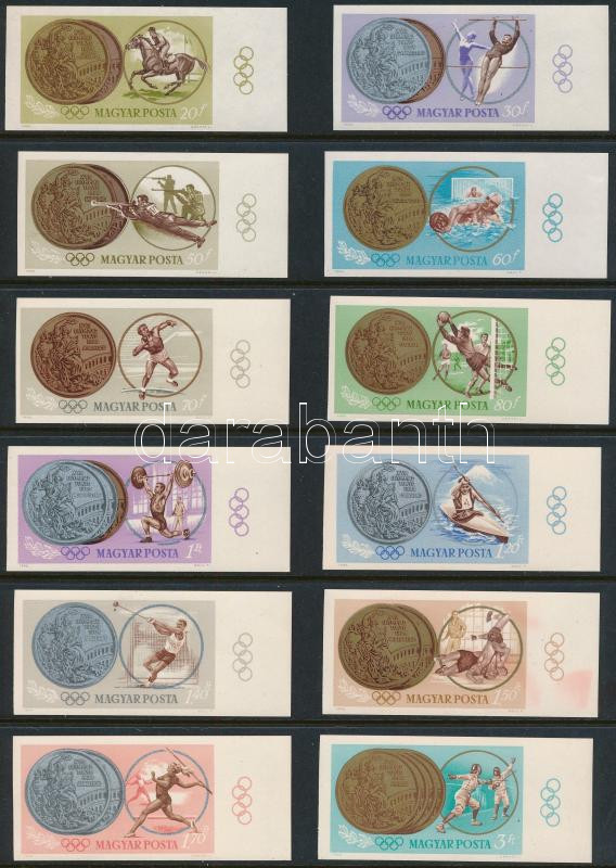 1965 Olimpiai érmesek I. vágott sor, a jobboldali ívszélen minden érték olimpiai ötkarikával / Mi 2089-2100 imperforated margin set