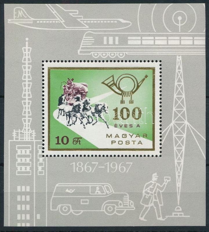 1967 100 éves a Magyar Posta talpas postás blokk (gumihiba / gum disturbance)