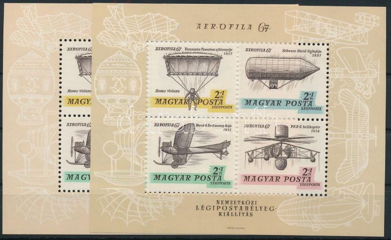 1967 2 db Aerofila (I.) blokk, a keret színárnyalata látványosan eltérő
