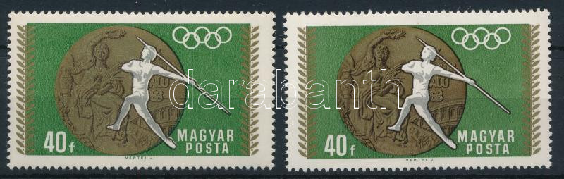 1969 Olimpiai érmesek 40f, eltolódott fekete színnyomat (gerely) + támpéldány