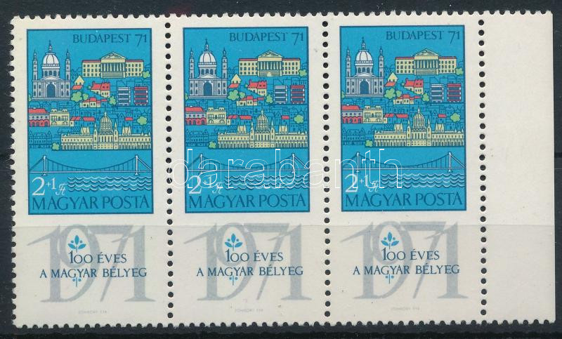 1970 Budapest '71 II. kék hármascsík a középső bélyegen fehér folt tévnyomattal (6.000)
