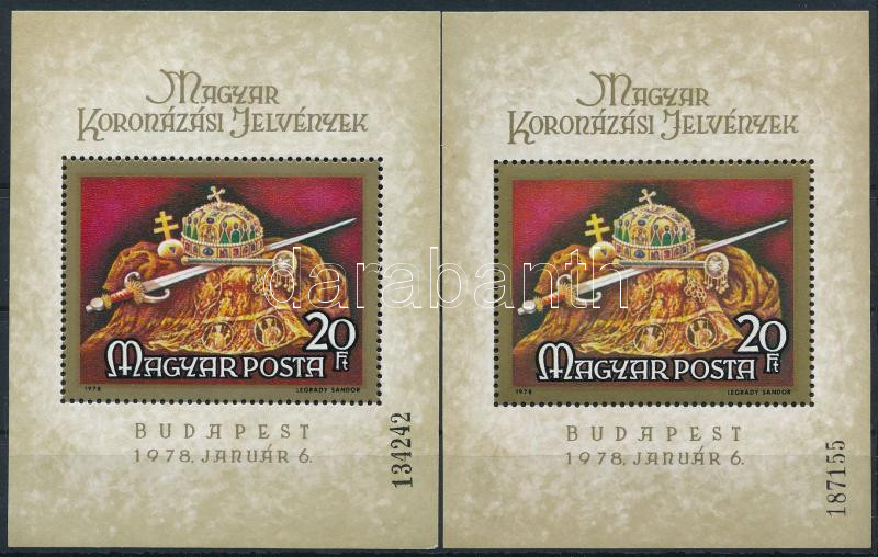 1978 Magyar koronázási jelvények vékony és vastag sorszámú blokk