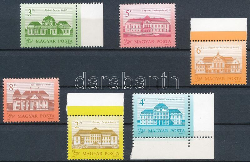 1986 Kastélyok 2Ft, 4Ft és 8Ft 12 : 11 1/2 fogazással + 3Ft, 5Ft és 6Ft 12 3/4 : 12 1/4 fogazással, sihl papíron (13.500)