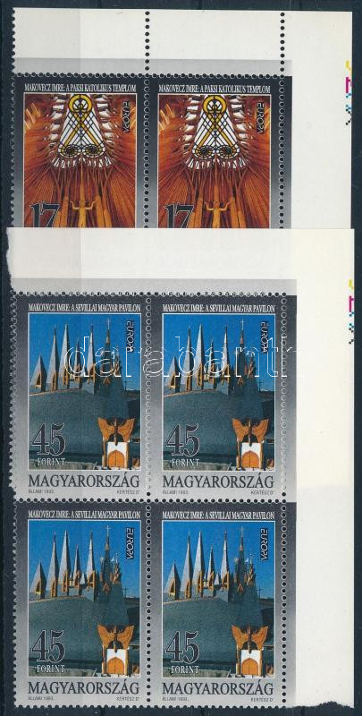 1993 Europa CEPT sor ívsarki négyestömbökben, ívszéli jelzéssel