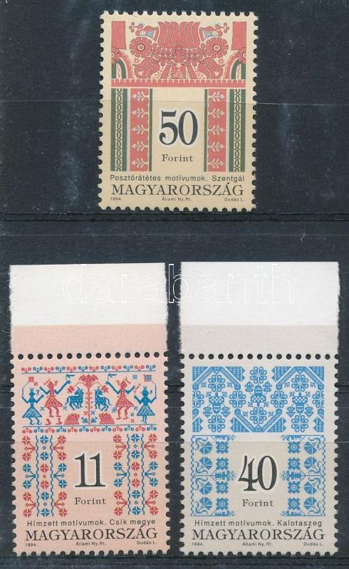 1994 Népművészet I. 11Ft, 40Ft + 50Ft sihl papíron, 12 1/4 : 12 3/4 fogazással (27.000)