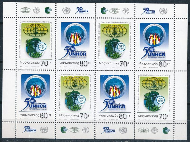 2001 Nemzetközi szervezetek 50. évfordulója kisív a 7. bélyegen "kék folt az Anniversary felirat után" tévnyomattal