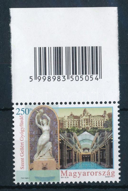 2011 Egészségturizmus - Gyógyfürdők (I.) 250Ft ívszéli vonalkódos bélyeg selymes gumizással, Securtrack ST típusú papíron. A szakirodalomban ismeretlen különlegesség!