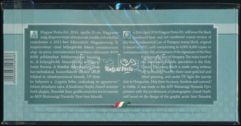 2016 Ötéves Magyarország Alaptörvénye kristályos blokk eredeti tokban, bontatlan csomagolásban (15.000)