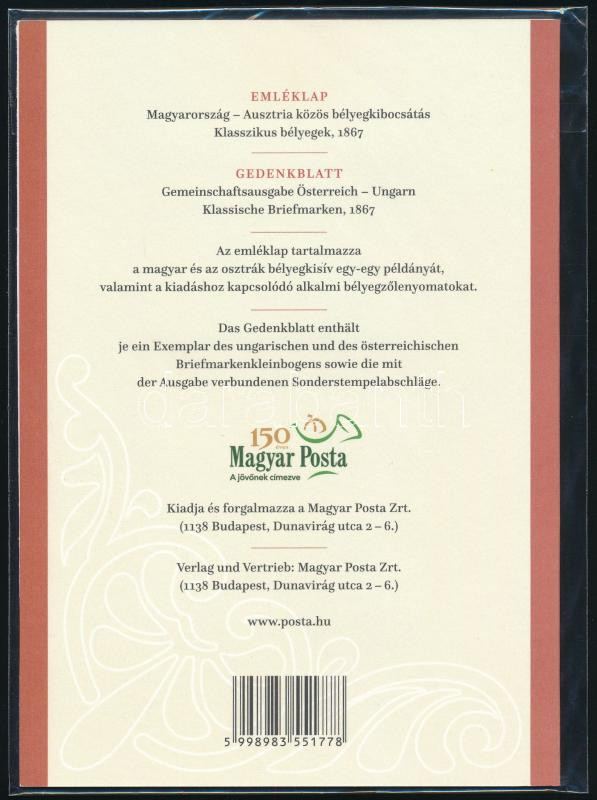 2017 Magyarország-Ausztria közös bélyegkibocsátás emléklap a két ország blokkjaival, bontatlan csomagolásban