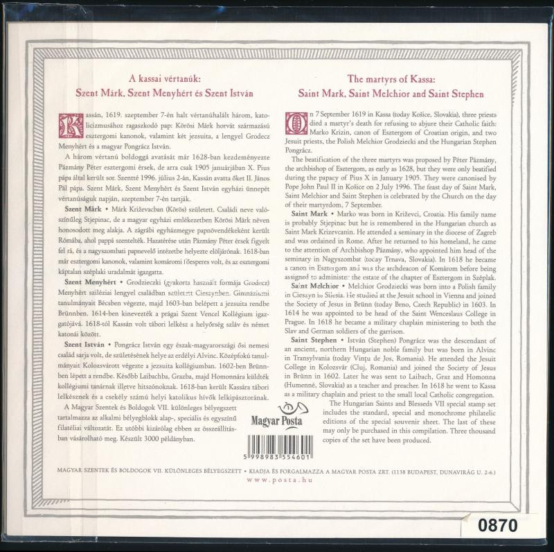 2019 Magyar Szentek és Boldogok (VII.) bélyegszett (13.500)