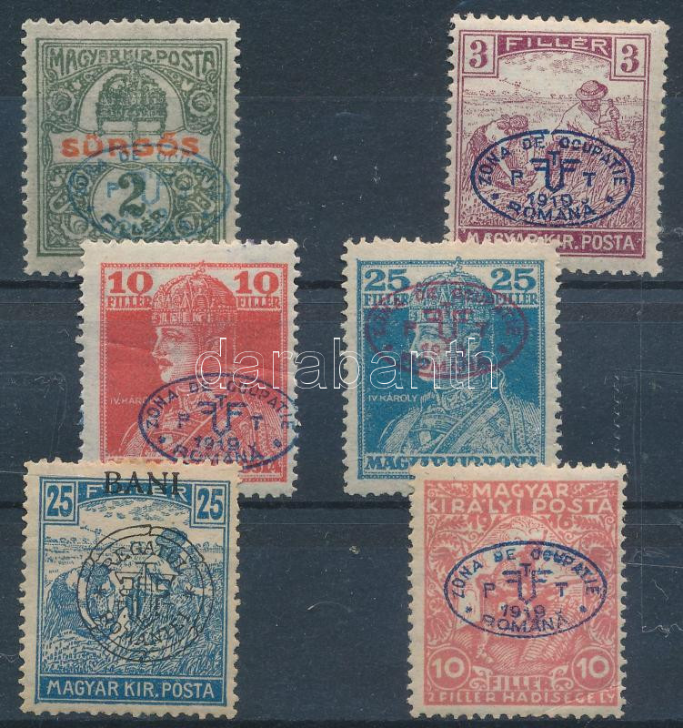 Debrecen 1919 5 db bélyeg + Kolozsvár 1919 1 db bélyeg, Bodor vizsgálójellel