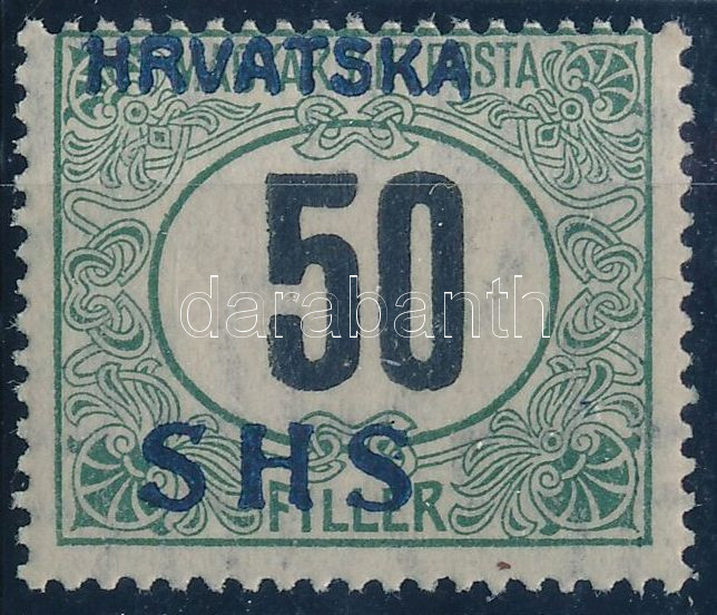 SHS 1919 Zöldportó 50f fekvő vízjellel Certificate: Zrinjscak (80.000)