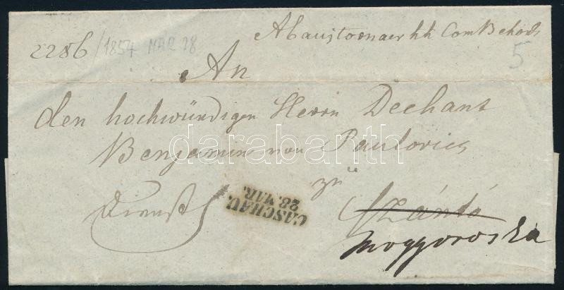 1854 Ex offo "CASCHAU" - Szántó, továbbküldve Mogyoróska
